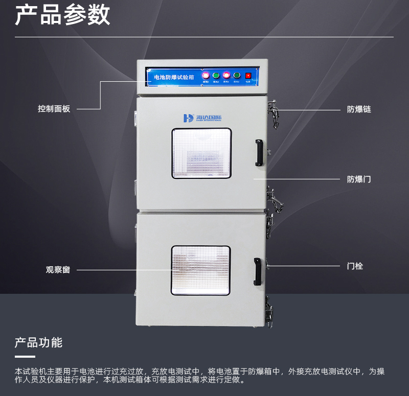 本試驗機主要用于電池進行過充過放,充放電測試中,將電池置于防爆箱中,外接充放電測試儀中,為操作人員及儀器進行保護,本機測試箱體可根據(jù)測試需求進行定做。 滿足標(biāo)準(zhǔn): GB 31241-2014,GB/T 18287 -2013,GB/T 8897.6-2008,YD/T 2366.1-2011,GB/T 21966-2008, MT/T 1051-2007 | ||