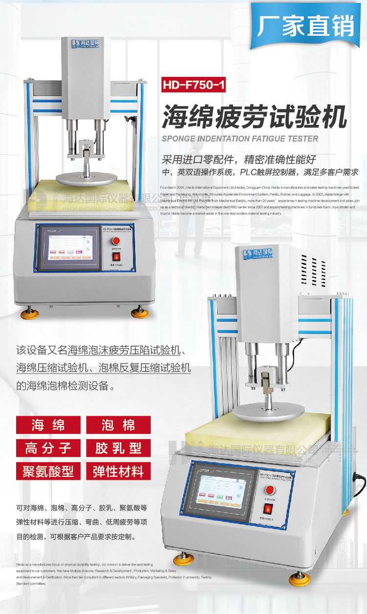 海綿疲勞測試儀主要用于泡沫聚合材料的往復(fù)壓縮試驗,測定殘余變形率。由此可以了解材料的動態(tài)疲勞特性 設(shè)計標(biāo)準(zhǔn):GB/T 10802-2006 ISO 3385 | ||