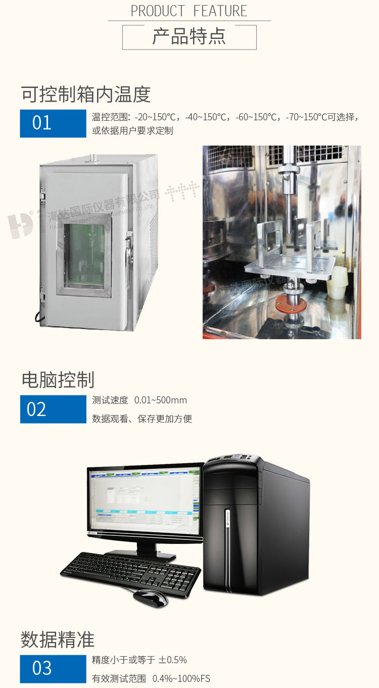 高低溫拉力試驗機HD-B607-S適用于橡膠,塑料異型材,塑料管材、板材、片材,薄膜、電線電纜、防水卷材、金屬絲等材料在高溫或低溫環(huán)境下進行拉伸測試。 設(shè)計標準:GB/T 16491、GB/T 1040、GB/T 8808、ASTM D6644、ASTM D5035、ASTM D2061、QB/T 2171、JIS K6854 | ||